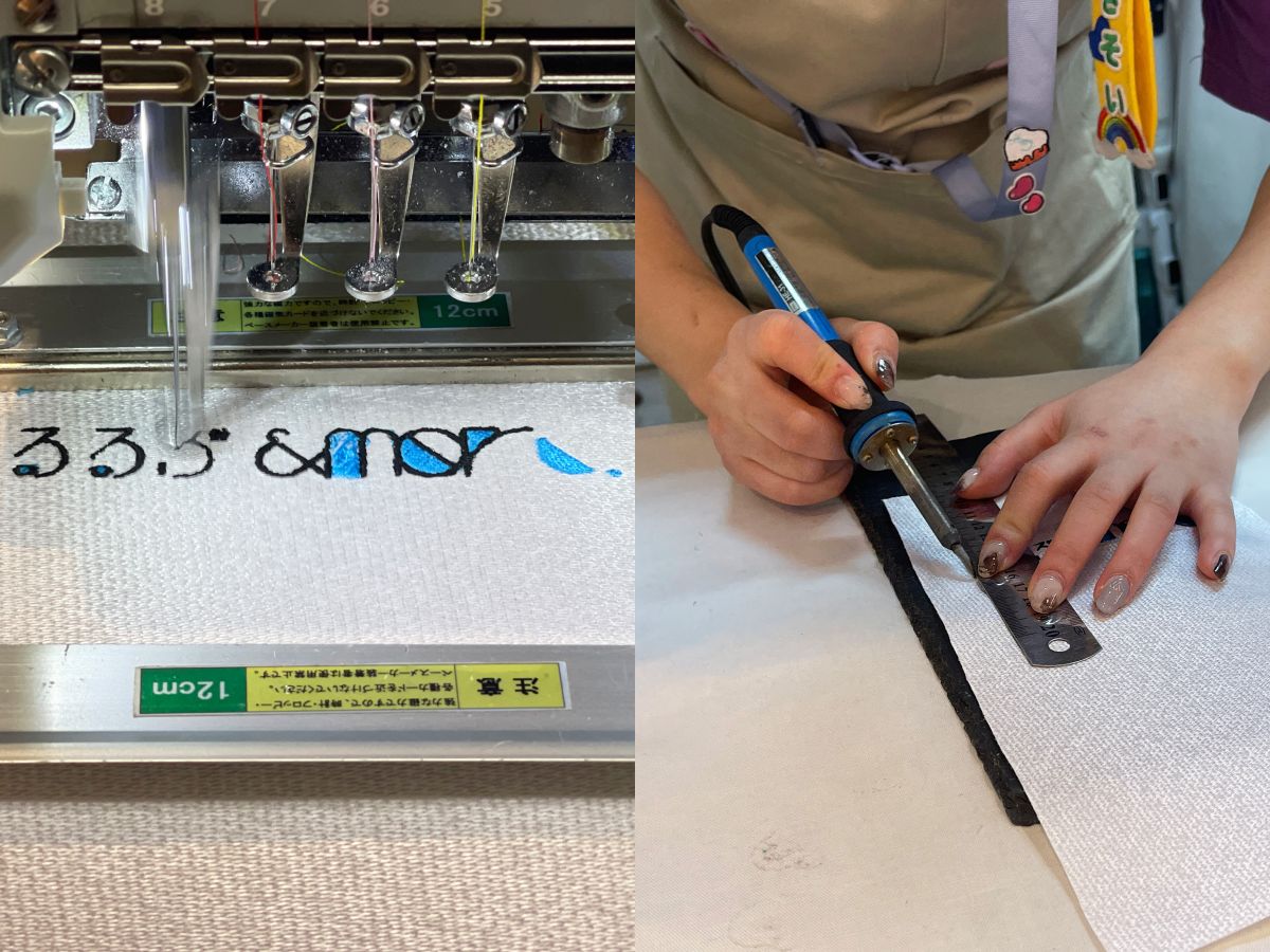 すごいスピードで布に刺しゅうされる様子に思わず感動! その後は刺しゅうされた布にのり付けし、専用の機械でカッティングしてくれます。