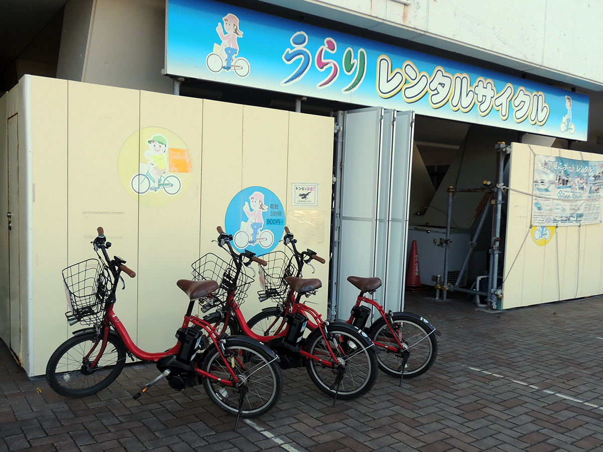 「うらりマルシェ」にあるポート。水中観光船にじいろさかな号発着所の近くにあります。なお「みうらレンタサイクル」は、ほかに三崎口駅、三浦海岸駅などにポートがあり、そこで貸出&返却が可能。当日受付もできますが、自転車がない場合もあるので、公式サイトから事前予約をしておいたほうがベターでしょう。