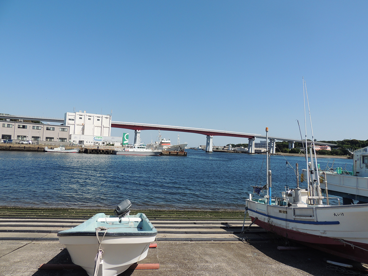 自転車で城ヶ島へ向かうときにも海沿いの道を通ります。ポートで、城ヶ島への行き方がよくわかる地図をもらえるので参考にしながら進みましょう。まず、最初の絶景ポイントは城ケ島大橋です。赤い城ケ島大橋はこの街のシンボル的存在。