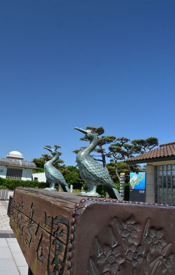 公園入口の門には、神奈川県の指定天然記念物で例年、秋から冬にかけて城ヶ島へやって来るウミウの像があります。