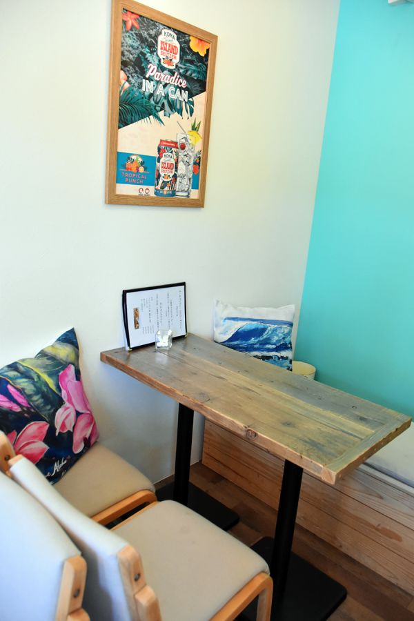 南国ハワイをイメージした店内は明るい雰囲気。テラス席もあります。