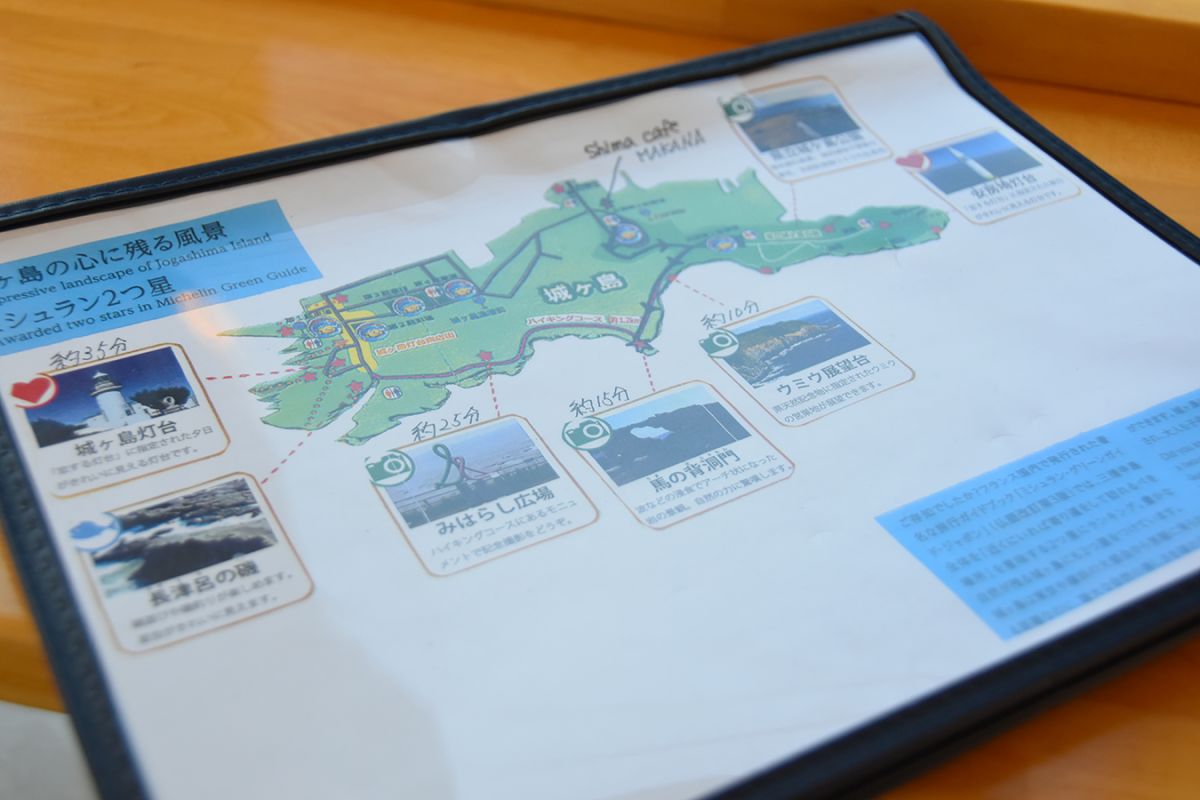 店内には手作りの城ヶ島案内マップが置いてありました。店が城ヶ島の入り口近くにあるため、城ヶ島をどう楽しむかをたずねる人も多いとのこと。地元民ならではのスポットや楽しみ方がわかるかも。