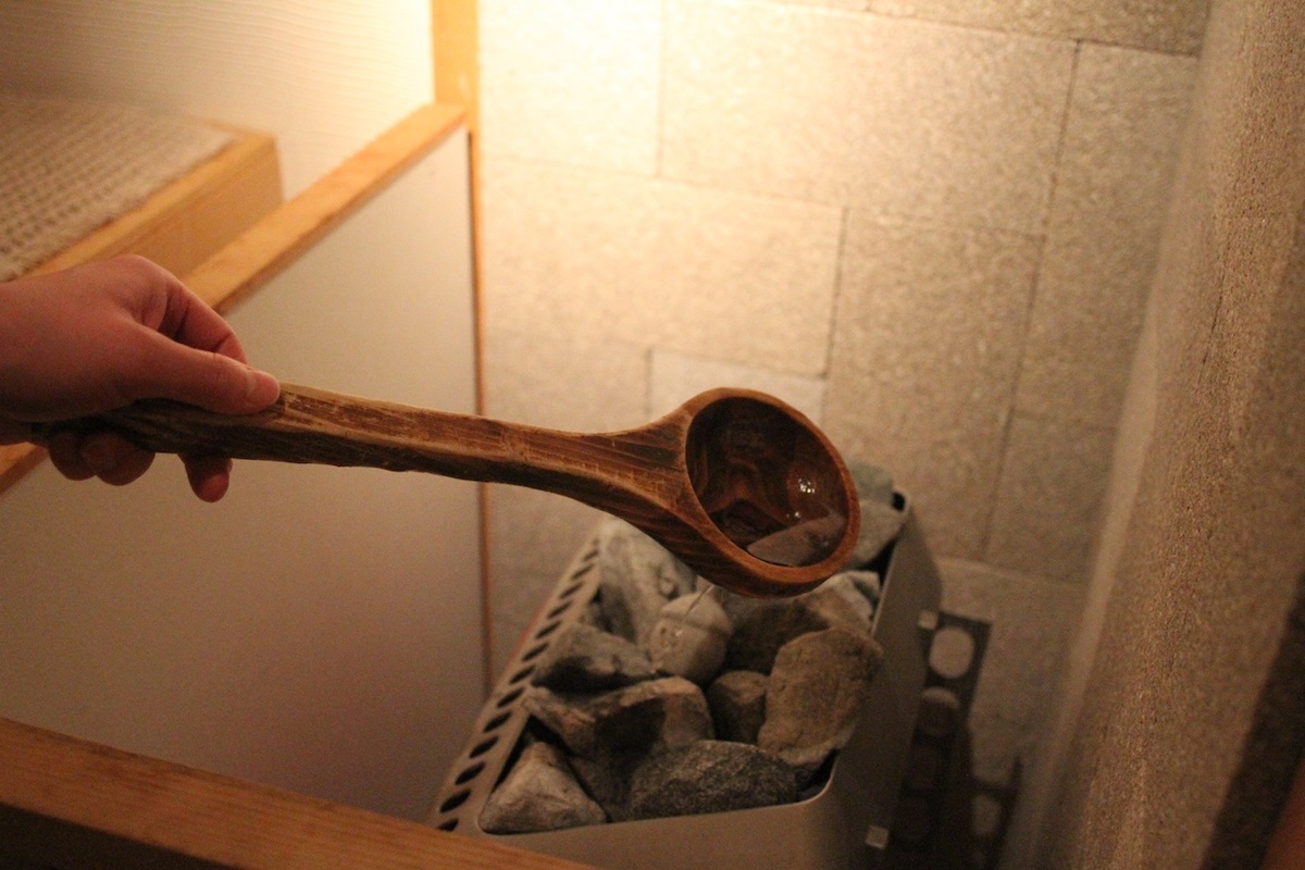 スタンダードルーム、デラックスルームともにセルフロウリュ体験が可能。専用のアロマ水に垂らしているアロマは、月替りでハーブセラピストがセレクトしています。アロマの香りを楽しみながらリラックスしましょう。