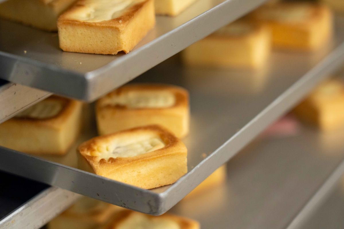 手のひらを使って型に押し込んでいきます。生徒の分を一斉にオーブンで焼くため、自分のだとわかるように印を付けます。その後、型が重ならないよう1cmずつ間隔を開けてトレーに並べていきます。常に講師やアシスタントの方が見回りに来てくれるので、わからないことがあったらその都度質問できますよ!