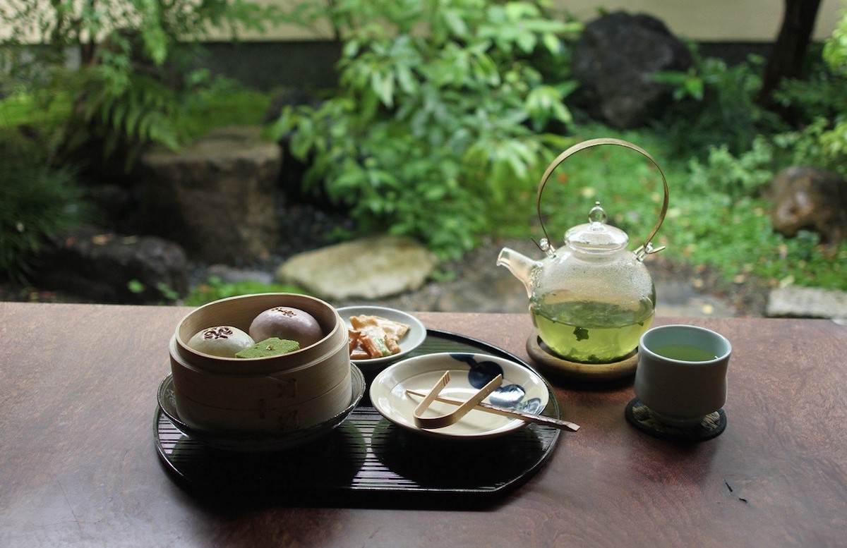 【京都・祇園】「ふじ寅」で中庭を望みながらいただくせいろご飯と蒸しまんじゅう