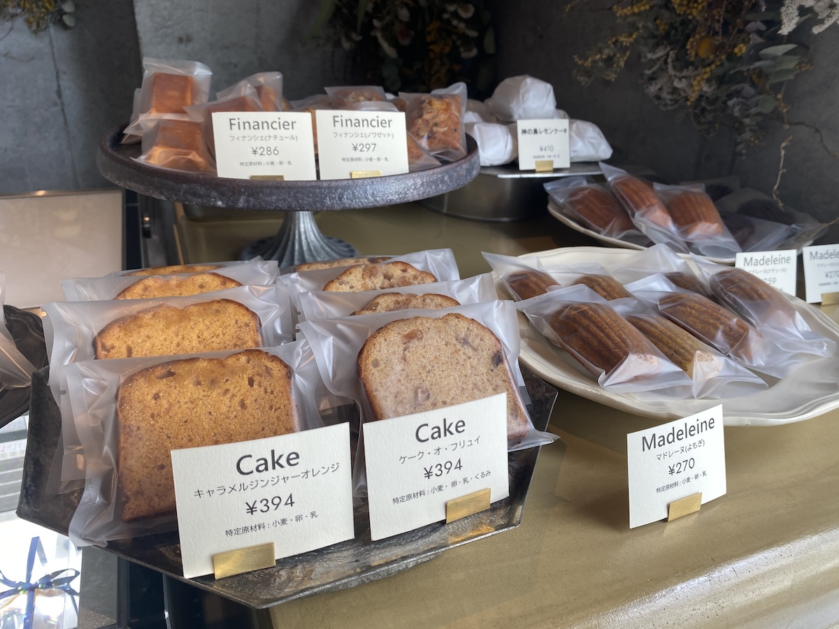 会計スペースには焼き菓子の販売コーナーが併設されており、ひとつひとつ手に取って購入することができます。パフェを注文せずに焼き菓子だけ買って帰ることも可能なので、近くに訪れた際は友人や大切な人へのおみやげにぜひ寄ってみてくださいね。
