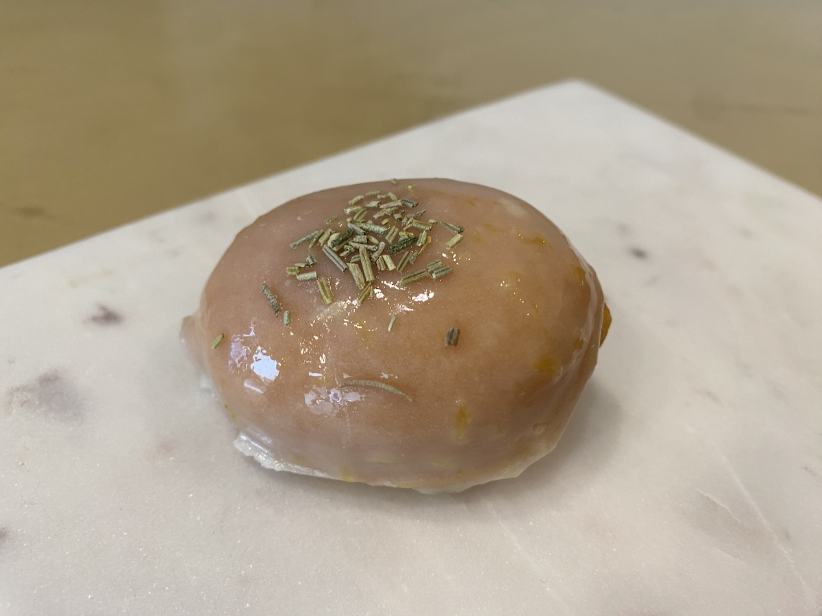 愛媛県今治市に浮かぶ「大三島」のなかにある神社で採れた「神の島レモン」をつかったレモンケーキが「神の島レモンケーキ」です。レモンのさわやかな酸味を感じられる生地を甘さ控えめなシュガーでコーティングしており、しっとりとした口当たりが魅力。トップに添えられたローズマリーの華やかな香りがよく、どれだけ食べても重たさを感じないすっきりとした味わいです。