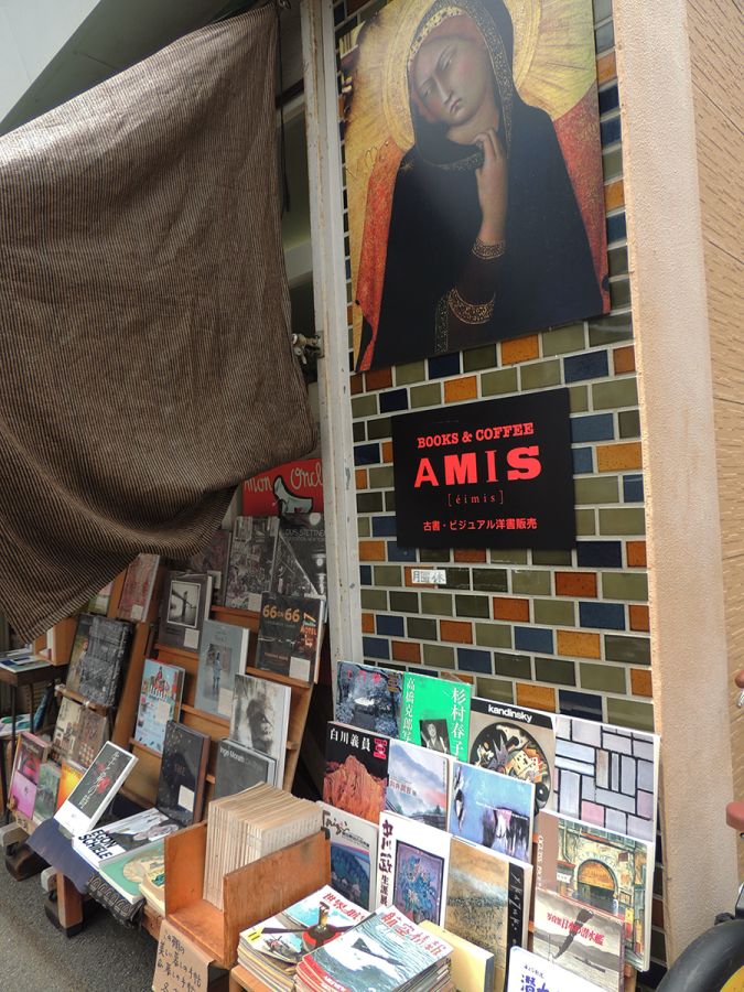 そんな「上町エリア」で、とても個性的な本とコーヒーの店を見つけました。店名は「AMIS(エイミス)」。上の古い建物の通りから、ひとつ道を曲がるとすぐ。ふらっと立ち寄ってみたくなる、そんな本屋さんです。まずは店頭で、どんな本があるのか見てみましょう。