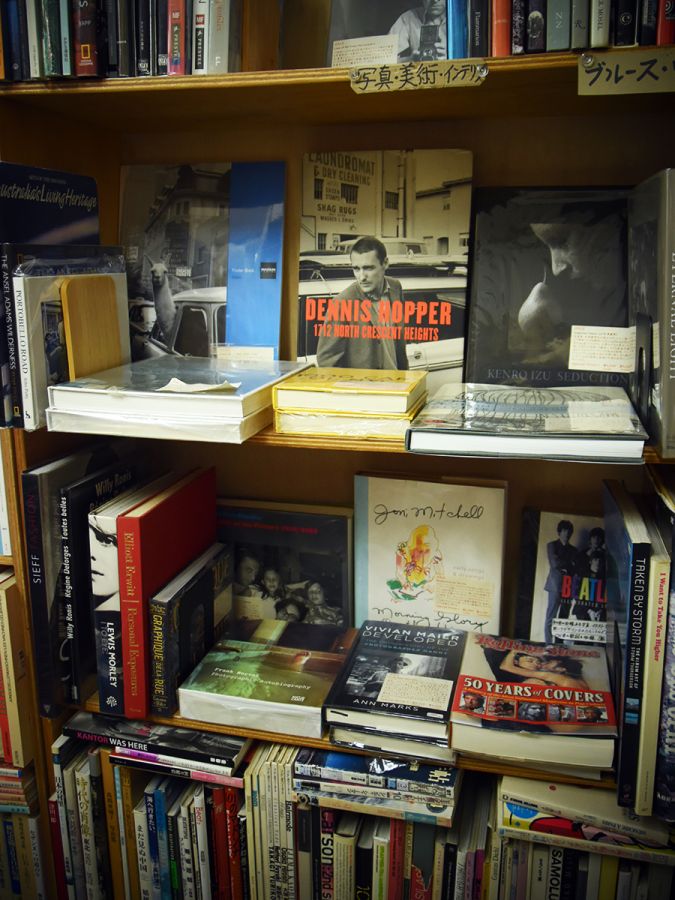 洋書を中心とした写真・美術・インテリアの本棚。デニス・ホッパーにジョン・レノン……アルパカが車から顔を……写真集系がいろいろです。
