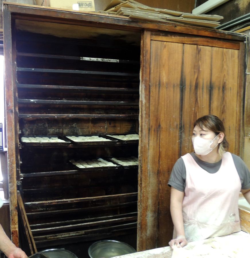 パンのおいしさのヒミツは写真の「ホイロ」。パンを発酵するものですが、すべて木でできているものは珍しく、木だから水分がたまらず、うまく発酵ができるとか。