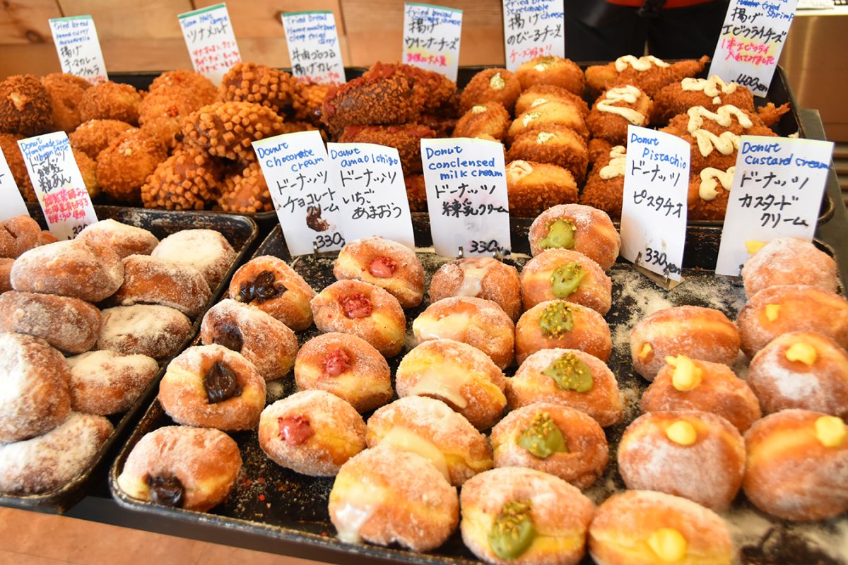 店に並ぶパンの種類は多く、ドーナッツや揚げパン、惣菜パンなどバラエティ豊か。カスタードクリーム、ピスタチオ、練乳クリームといったラインアップの「ドーナッツ」は1個330円。「揚げウインナーチーズ」400円、「たまごサンド」390円なども人気です。