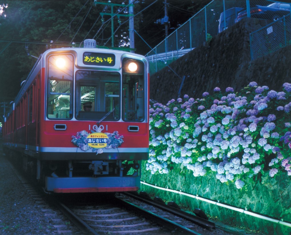 箱根登山電車を彩るアジサイがいよいよ見頃に! 2024年6月14日(金)から箱根登山電車沿線でアジサイのライトアップが始まり、6月15日(土)には座席指定列車「夜のあじさい号」の運転が開始されます。さらに箱根強羅公園ではアジサイにちなんだイベント「あじさい展2024」を開催。6月30日(日)までの期間限定なので早めにチェック!