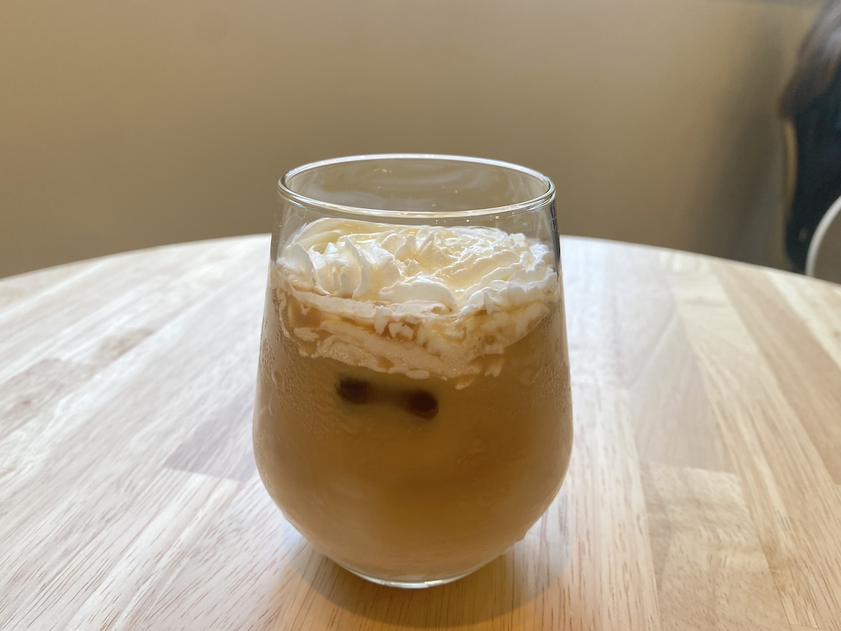 「ハニーラテ」は、表面を見ればわかるようにハチミツをたっぷりと注いだラテです。百花蜜に比べてリッチなお値段のする単花蜜をこの量トッピングできるのはハチミツ専門店ならでは。エスプレッソのうえにホイップクリーム、そして「アカシアハチミツ」がのっています。エスプレッソのほろ苦さがある分、ハチミツの甘さがよく感じられて、ハチミツの味を楽しみたい人にぴったり。