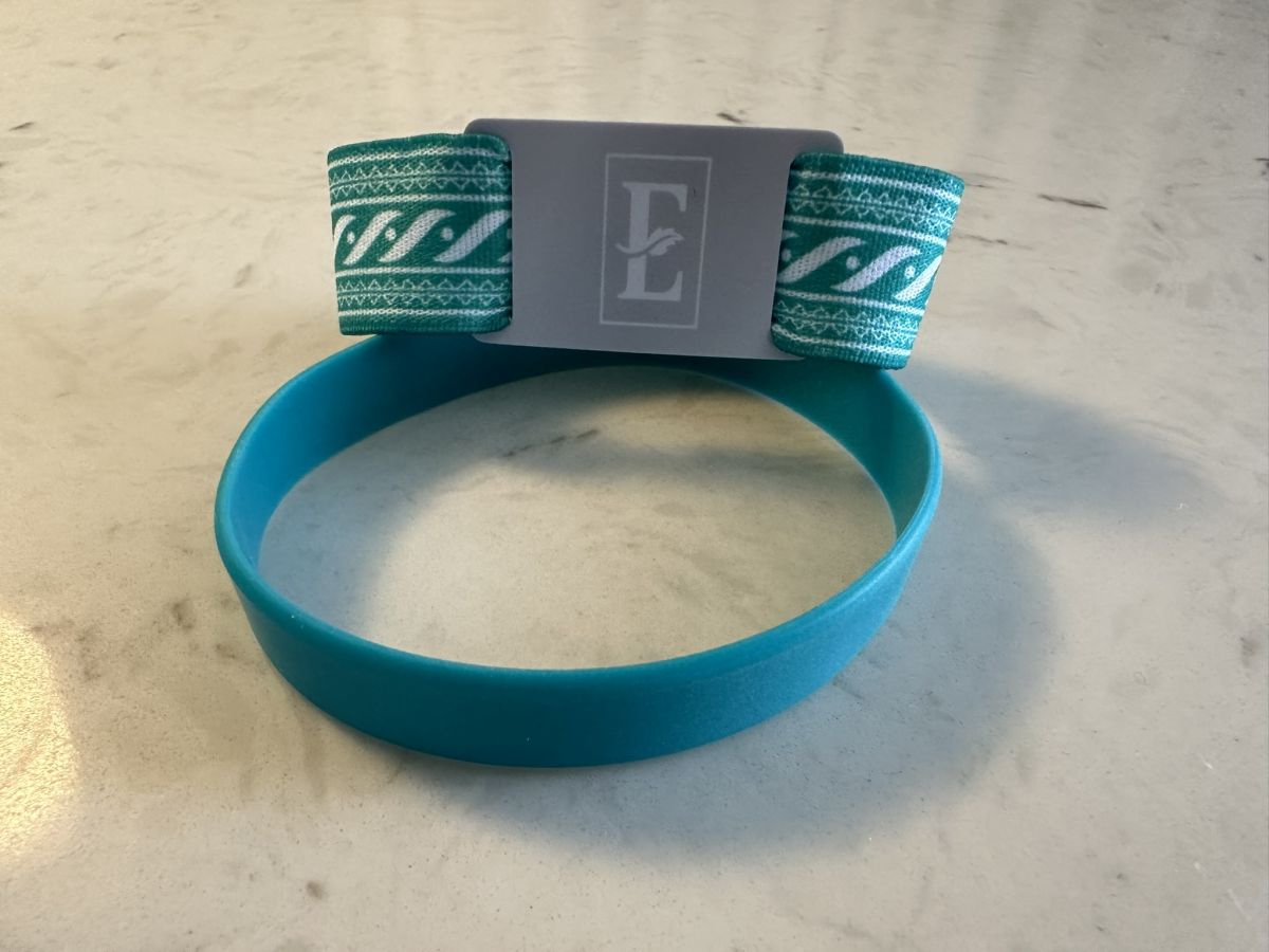 リゾートのルームキーは、バンドタイプです。海やプールに行く時も置き場に困りません。そして、もう一つあるエメラルドグリーンのゴムバンドは、朝食の時、宿泊者であることを示すためのものです。