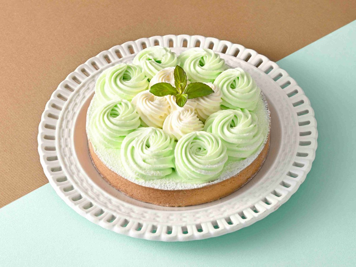 生ミントの葉からエキスを抽出し混ぜ合わせたミントクリームを上に絞った、さわやかで美しい緑色のタルトが昨年に引き続き再登場! 今年はミントクリームが増量し、ミントの清涼感ある香りをよりいっそう楽しめるように。