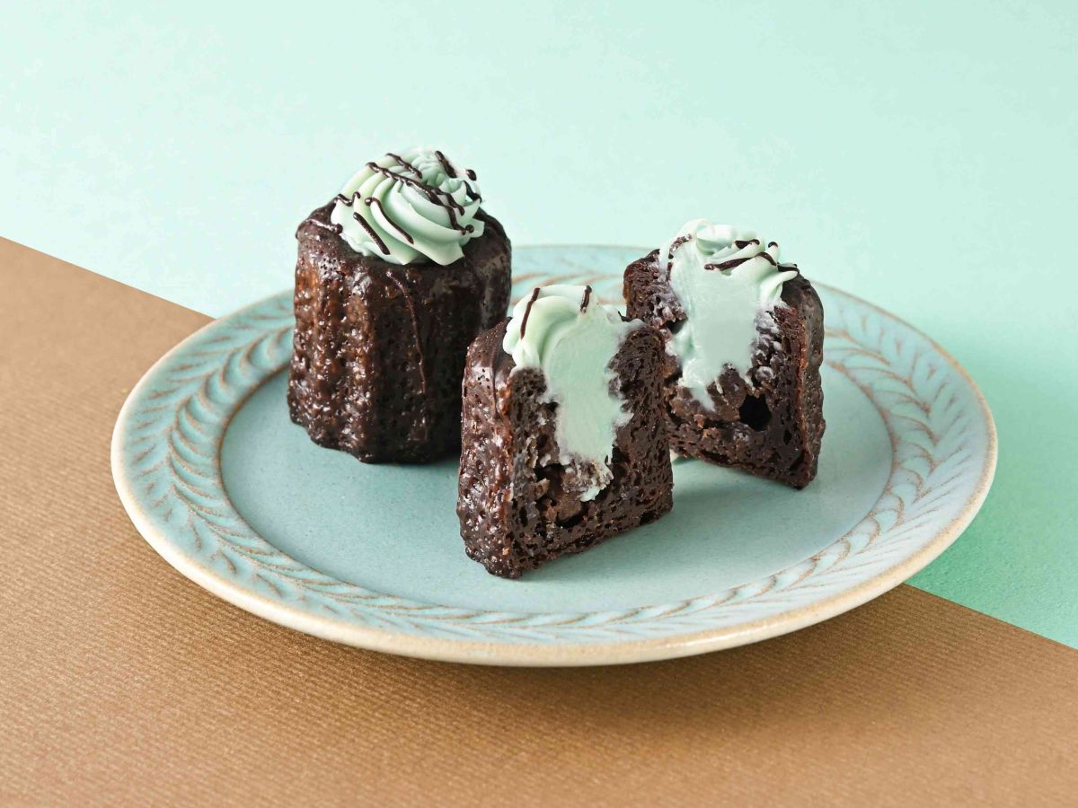 ミントグリーンのガナッシュがおしゃれなカヌレ。生地にもミントが練りこまれ、さわやかな風味が濃厚なチョコレートと絶妙にマッチする、夏のティータイムにぴったりの一品です。