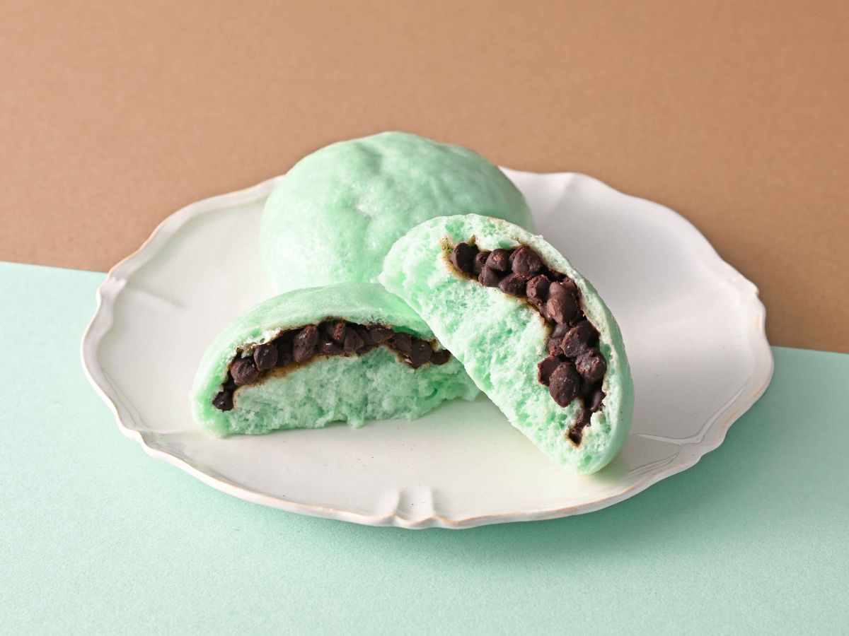 本格点心を手がける「パオパオ」では、「チョコミントまん」を販売。清涼感あふれるミントを練りこんだ生地の中には、まんまるサクサクのチョコレートが! 食べごたえがあり、遊び心満載の中華まんです。
