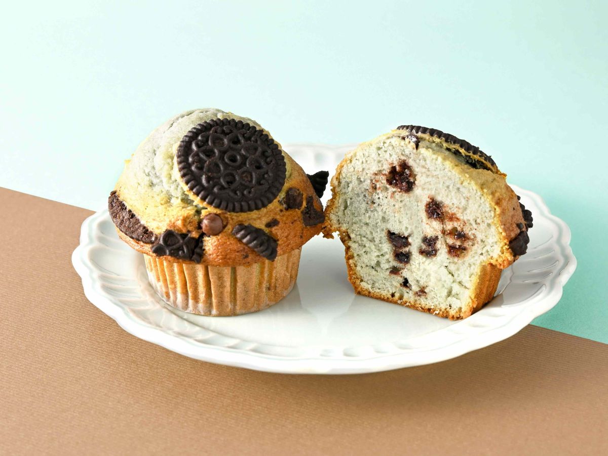 さわやかなミント生地のマフィンにチョコチップを練りこみ、サクサク食感のココアビスケットをトッピング。暑い夏には冷やして食べるのもおすすめです。