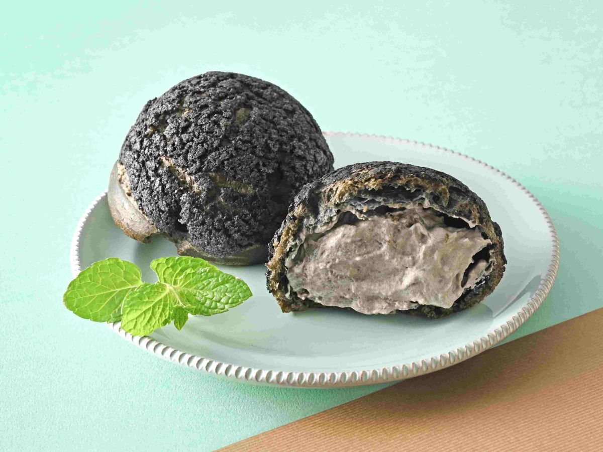 福井県坂井市の名勝・東尋坊(とうじんぼう)の岩肌をモチーフにしたスイーツが期間限定展開。真っ黒いごつごつ食感のシュークリームは、濃厚チョコカスタード×ミント風味のチョコミントホイップとの相性が絶妙! 半解凍にしてひんやり食感を楽しむのもおすすめです。