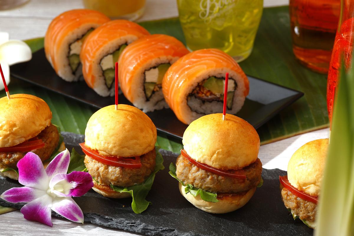フランスより名誉ある勲章を受勲した総料理長 中宇祢満也氏監修の、ハワイ名物の「ガーリックシュリンプ」をはじめ、ハワイアンバーベキューをイメージした「ポークプロシェッド」、豪快にグリルされた野菜やパイナップルなどを楽しむことができます。