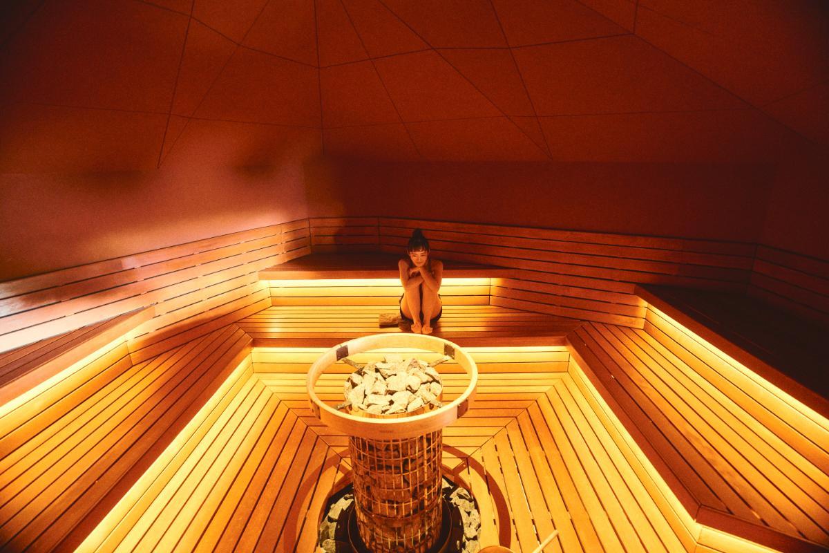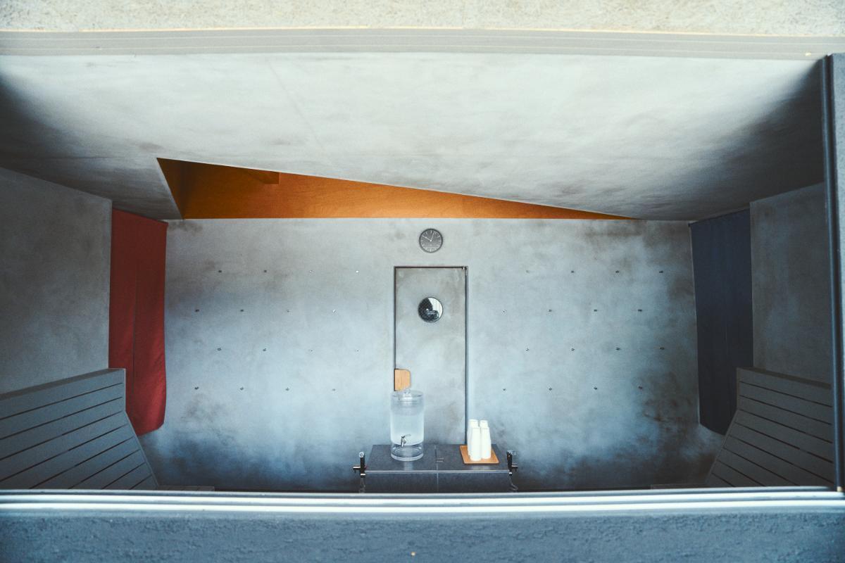 円錐の天井はでこぼことした形状で、ロウリュしたときの蒸気があちこちに踊り、舞い、どこに座っても気持ちいいし、かっこいいし、なんだか宇宙船にいるみたい。気持ちよさも相まって、このまま浮いても不思議に思わないかも。