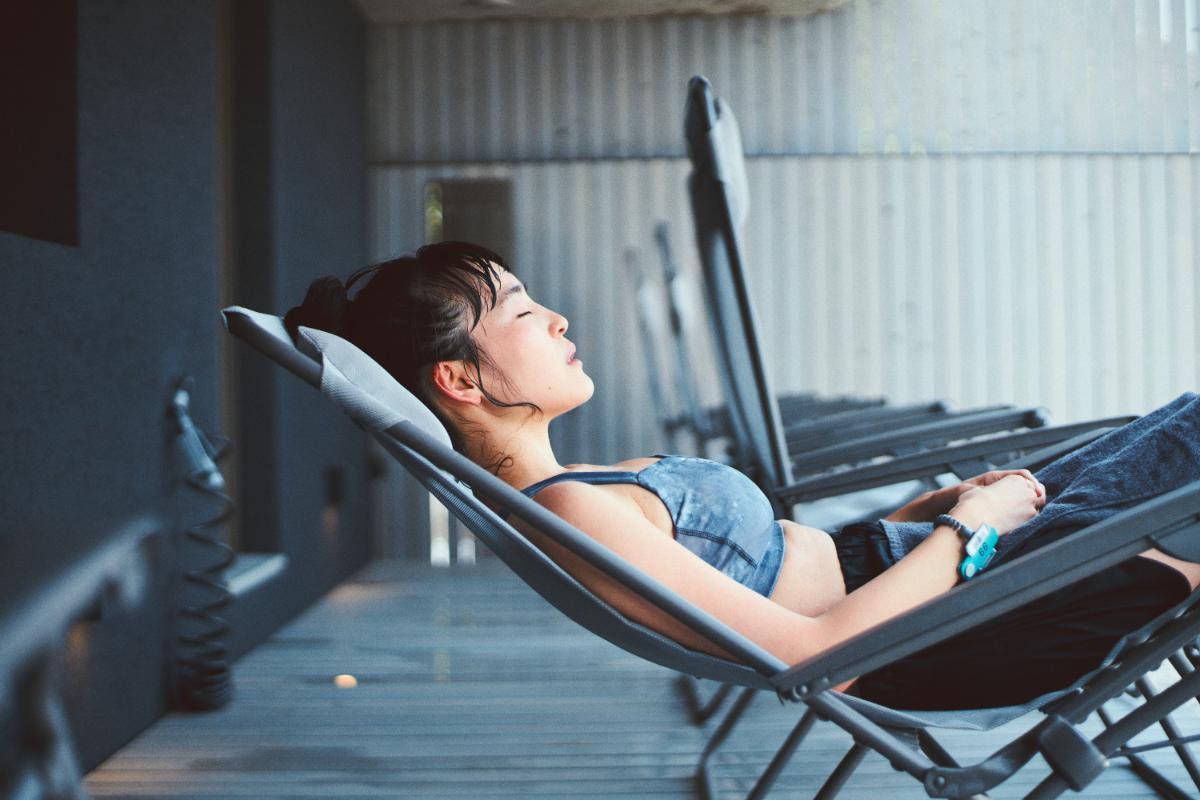 外気浴前に体がふわふわしちゃって、ふわふわとした足取りのわたしは、なんとか水風呂横の扉を開けて外へ。