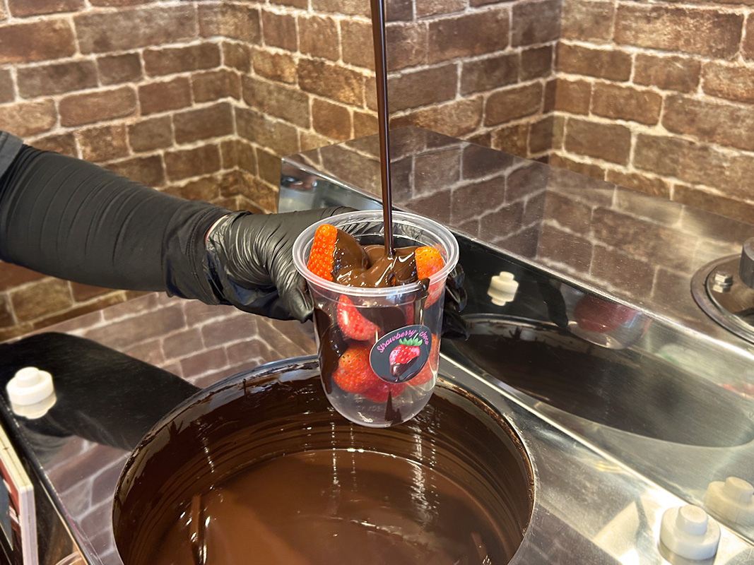 「Strawberry choco」では、こだわり抜いて厳選したイチゴにチョコレートをたっぷりかけた、本格的なイチゴチョコが楽しめます。