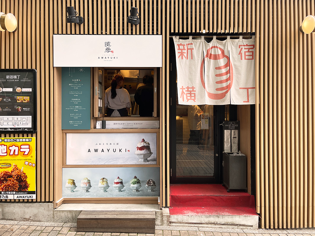 かき氷専門店「ふわとろ氷工房 淡雪」があるのは、東京メトロ新宿三丁目駅から4分ほど歩くと見えてくる、複合型飲食店「新宿横丁(しんじゅくよこちょう)」の一角。