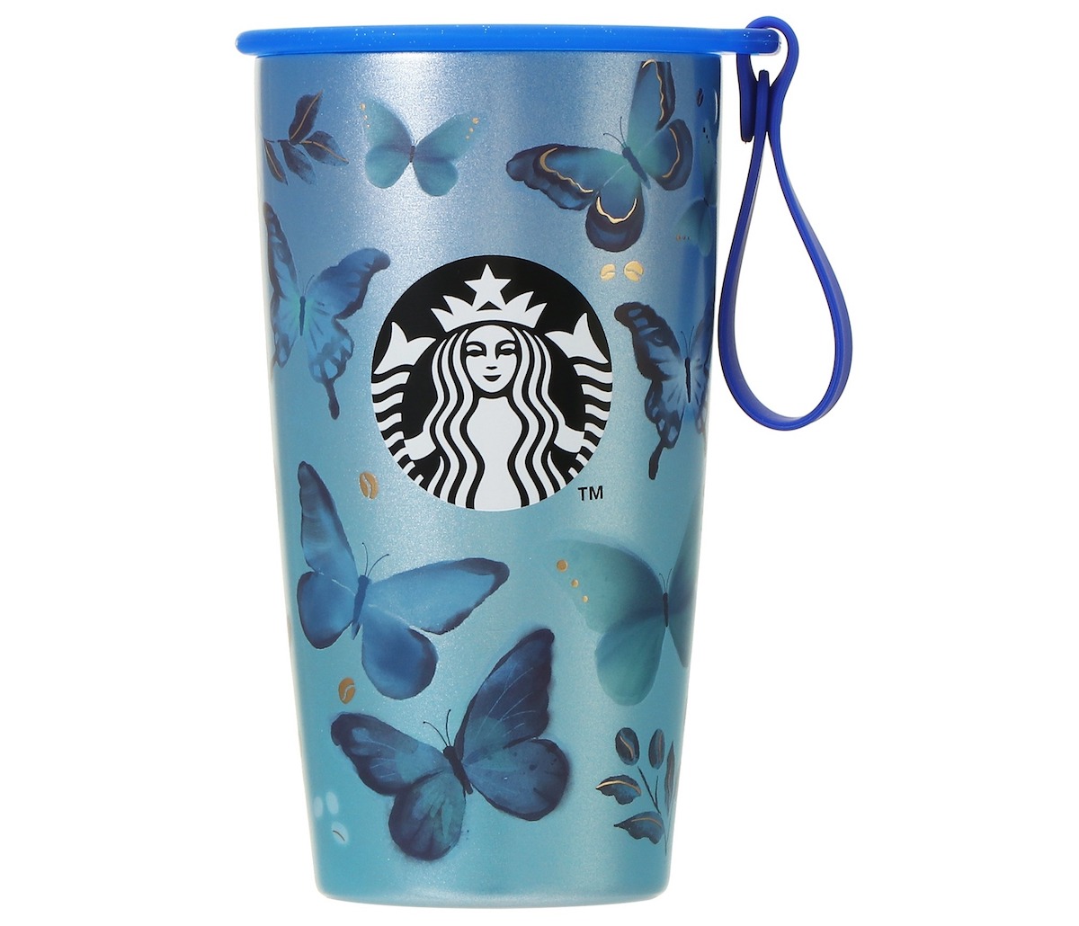 ⑤2023年発売「ストラップカップシェイプステンレスボトル ブルーバタフライ355ml」
