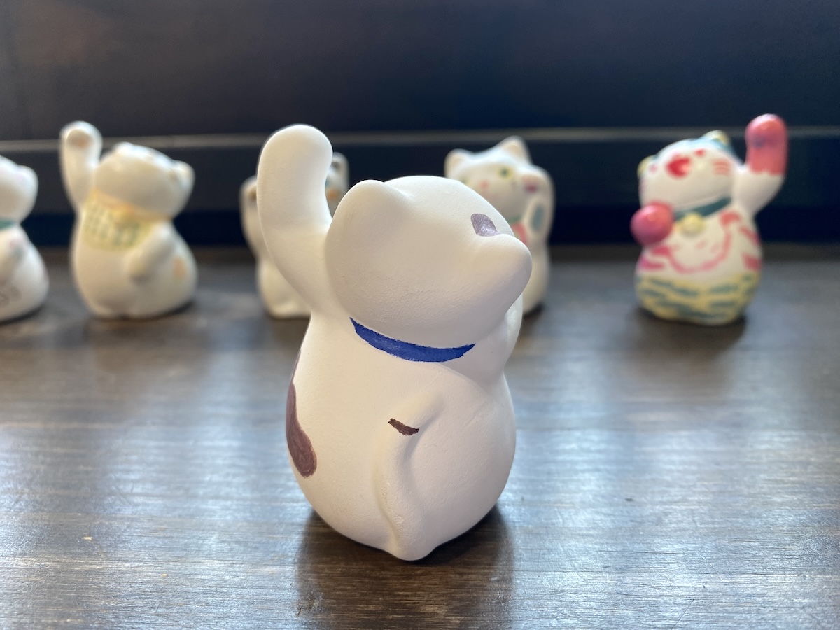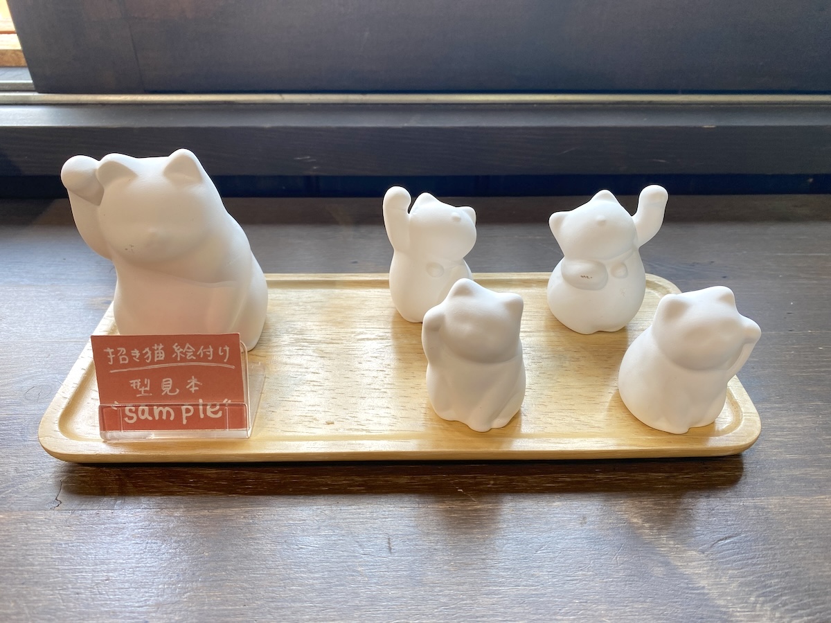 見本の招き猫もいくつか置いてあるので、それを参考にすれば絵が苦手な人でも安心して決められますよ。