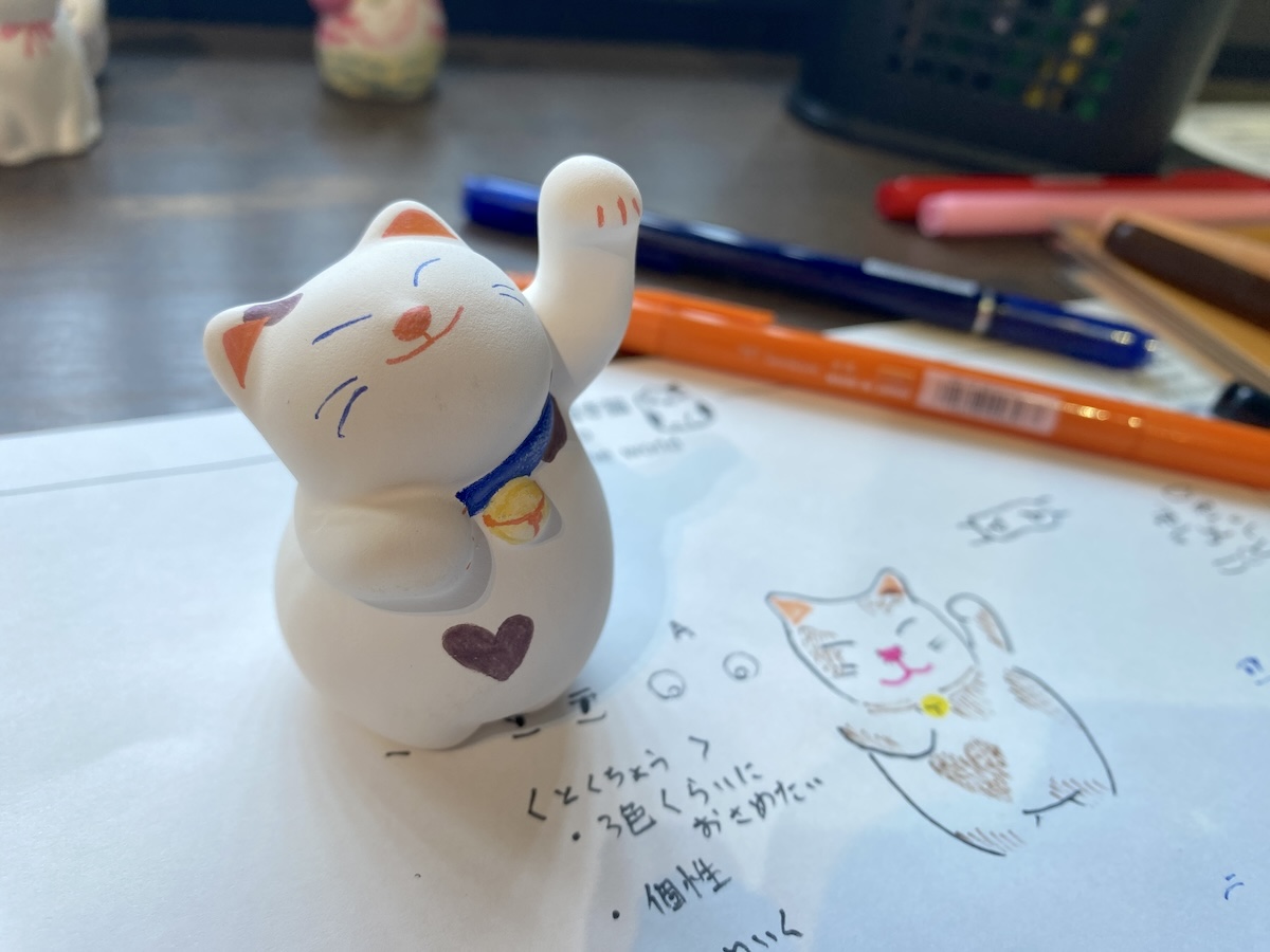 招き猫を選んだら、下書きを書いていきます。ハイクオリティな招き猫を作るためにもまずはデザイン決めから。