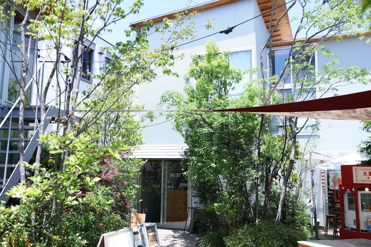 まるで公園の広場のように緑あふれる敷地内には、目当ての飲食店を目指して来る人もいれば、ご近所の人が犬と散歩をしていたり、近隣で働く人がベンチでひと休みしていたりと、自由でリラックスした雰囲気が漂っています。