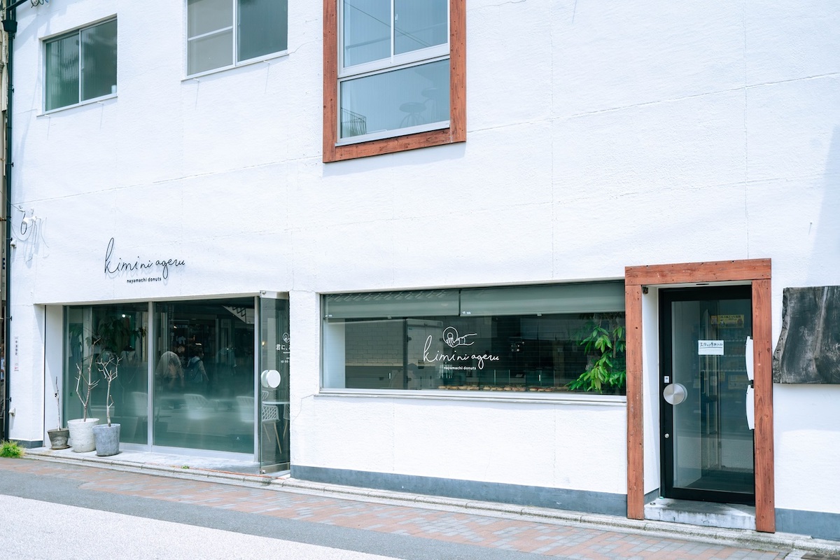 京阪電車中書島駅から北へ徒歩10分。京都の城下町らしい風情たっぷりの道を進んだ先に、ドーナツ専門店「NAYAMACHI DONUTS 君に、あげる」(以下、君に、あげる)があります。米粉・玄米粉ベースの焼きドーナツと、イースト発酵の揚げドーナツそれぞれに心踊るトッピングを施した、手みやげにもぴったりのドーナツたち。毎日食べたいやさしいおいしさを堪能しましょう。