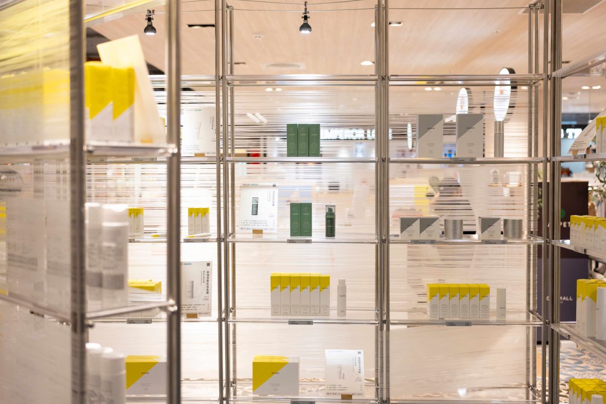 信義区に位置し、台北101からほど近い新光三越A11の地下2階。フードコートやスーパーマーケットがある一角に、周囲の店舗とは一線を画した「分子藥局NORTH HUB」があります。透明なロープのアートデザインの外観が特徴的!内観が見えにくくなっているのは、どんなお店なのかあえて興味を持ってもらうためなんだとか。