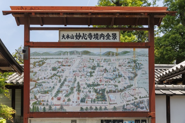 さて、妙心寺のみどころをご紹介する前に知ってほしいのが、境内がとてつもなく広いことです。境内は直線距離で東西約500m、南北約600m、敷地面積は約10万坪あり、これは東京ドーム約7個分もの規模。境内をぐるりと回るだけでも2時間近く、通常公開している退蔵院や桂春院、大心院といった境内塔頭も合わせて巡ると半日は必要です。そのため、事前に拝観したい寺院を巡るルートを決めてから訪れましょう。