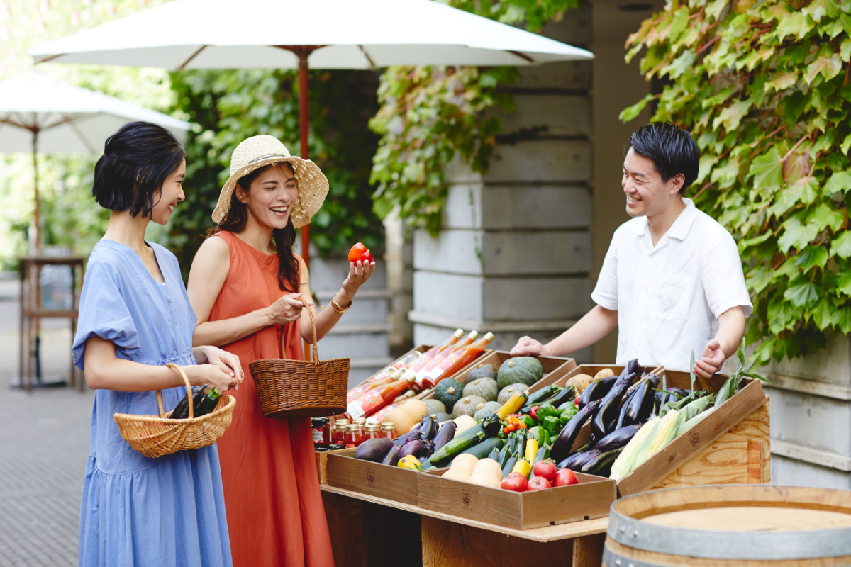 2010年からスタートした「リゾナーレ八ヶ岳」の「⼋ヶ岳マルシェ」。おいしい野菜を気軽に買え、その場で味わえる人気イベントです。