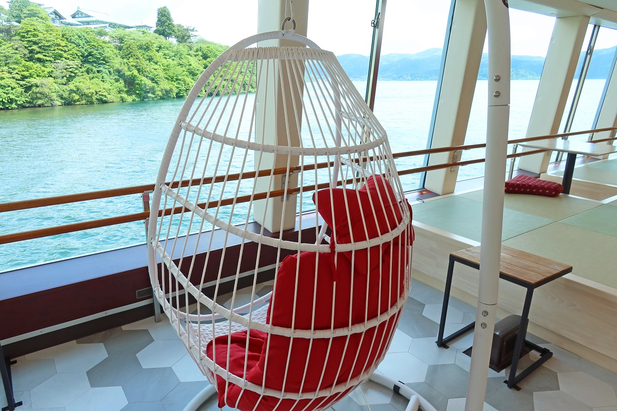 さわやかな夏を楽しむなら箱根で船旅はいかが? 今回は、2024年2月にデビューした遊覧船「箱根遊船 SORAKAZE」に乗って、フォトジェニックな湖上散歩を楽しんできました。まるで緑の公園のような船内とフォトジェニックな座席、船内のショップで買えるグルメ&おみやげもご紹介します。