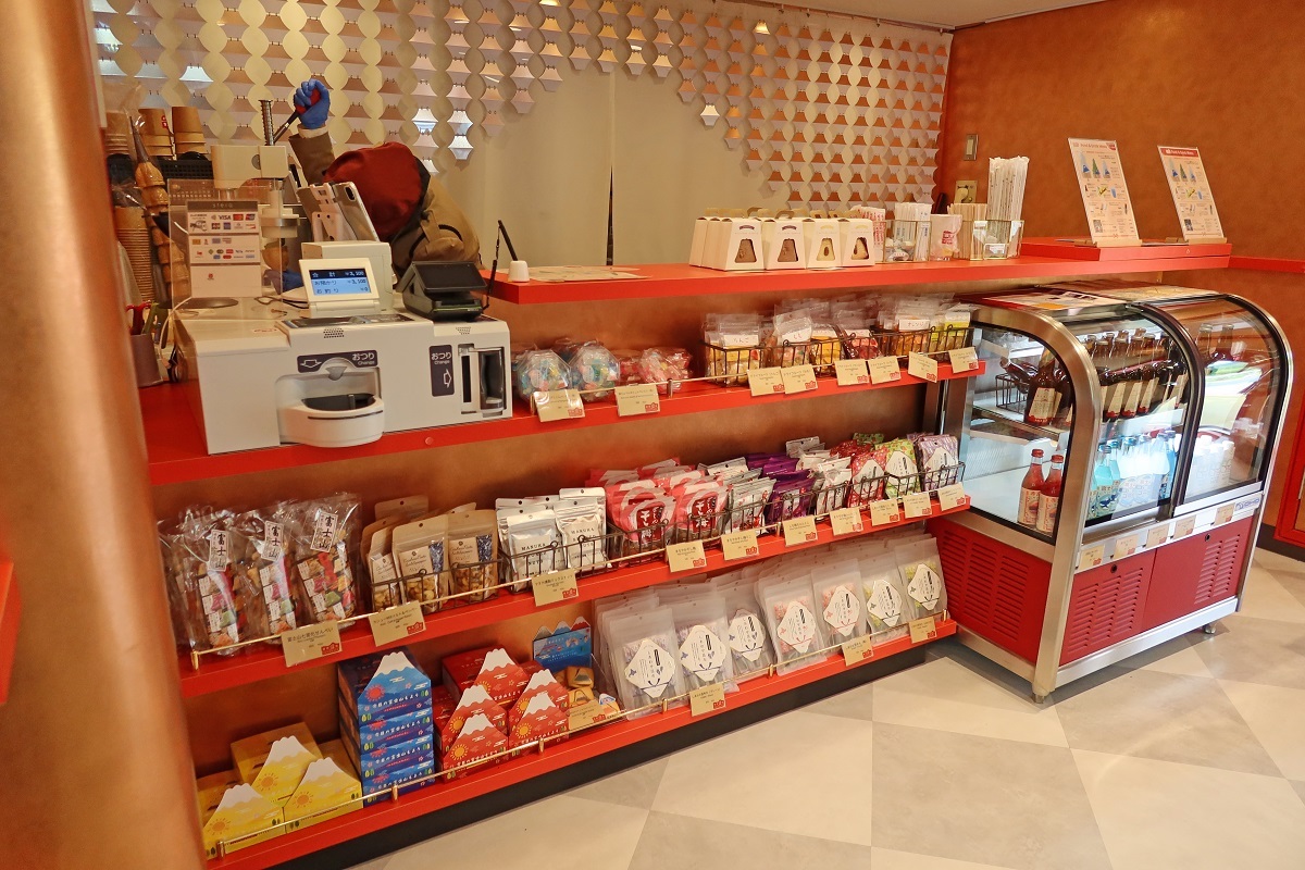 1階のショップでは、ドリンクやスイーツ、おみやげなどを販売しています。