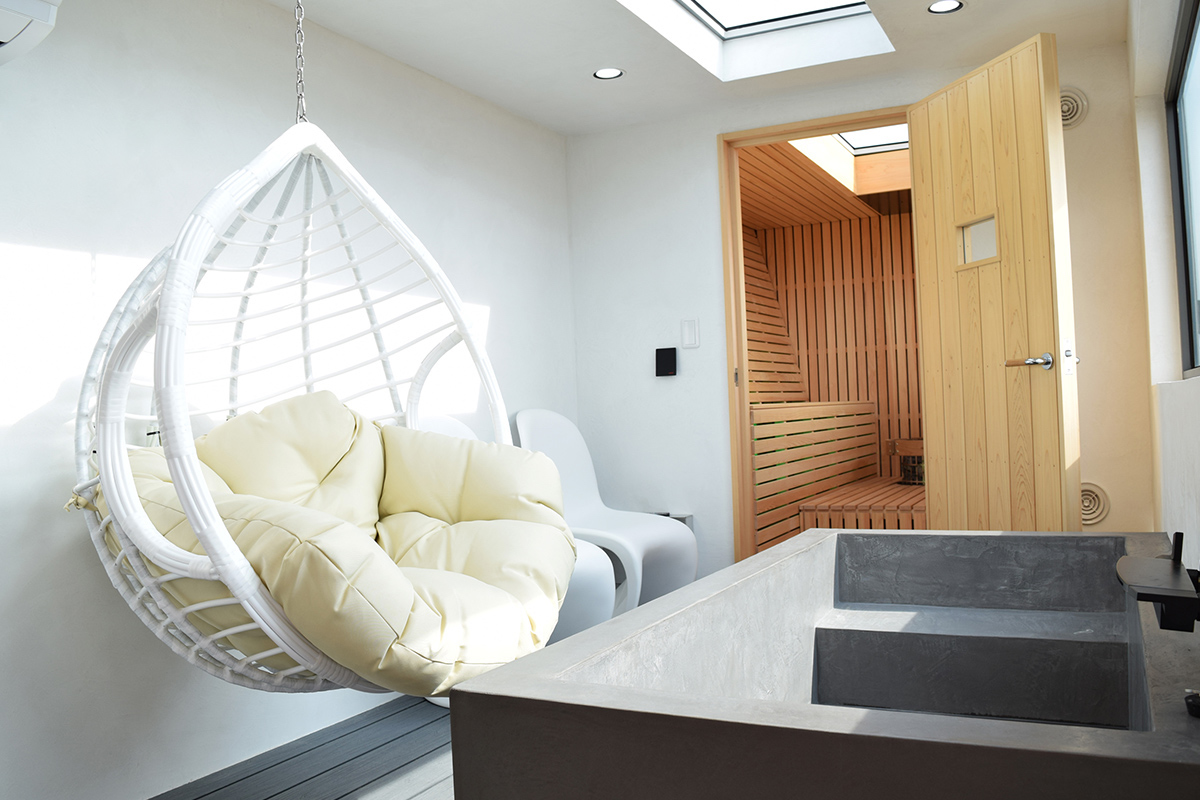 なかでもプレミアムタイプの「SAUNA Suite Villa(定員4名)」は、プライベートサウナを完備。ヒノキを使用したサウナ室内には空に向かって開かれる大きな天窓があり、開放的な癒やしの空間です。