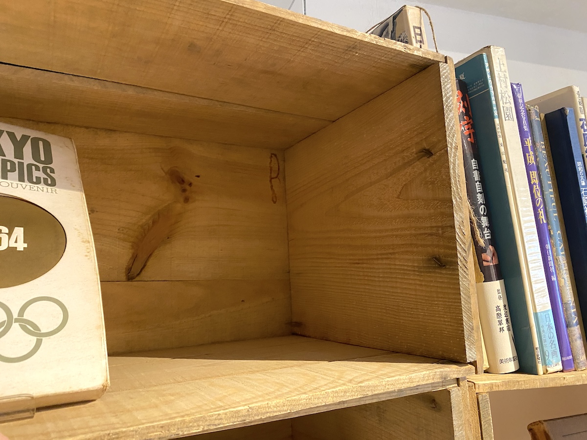 よく観察してみると、本棚に使われているのはリンゴ箱!?