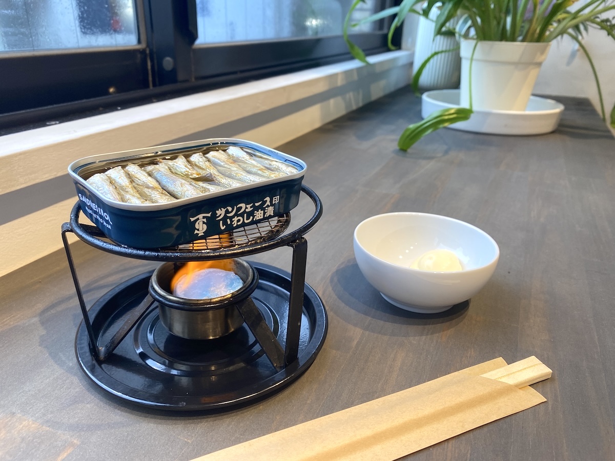 「オイルサーディン」は、イワシの油漬けのこと。スタッフが固形燃料に火をつけてくれて、目の前であぶられるライブ感を楽しむことができます。ぐつぐつと泡が立ち、香ばしい香りが感じられるようになってきたら食べ頃。キュッと身が引き締まっていて、味も濃いめなのでお酒との相性バツグン!病み付きになること間違いなしです。