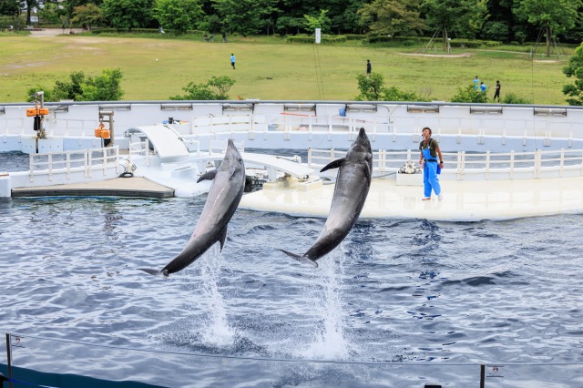 ドリンクやフードは、イルカスタジアムへの持ち込みもOK。スタジアムはプログラムの時間以外も解放されていて、イルカたちの日常が繰り広げられる中でぼんやり過ごす時間は至高そのもの。