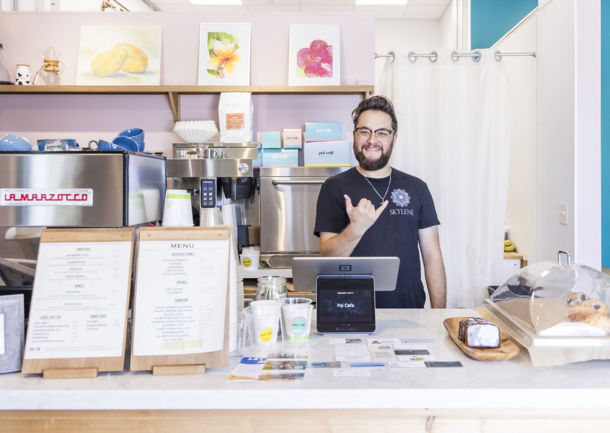 「パイ・カフェ」は、平日には早朝6時にオープンするので、早起きなローカルたちが、目覚めの一杯を求めてやってきます。オーナーのマイカさんは、以前ワイキキにあった人気カフェで腕を磨いたバリスタ。こだわりたっぷりのコーヒーをていねいに入れてくれます。