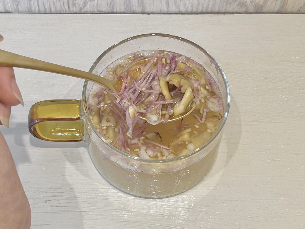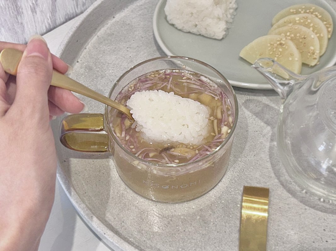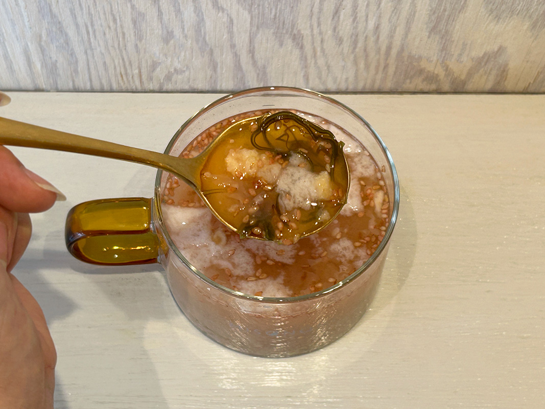 白キクラゲや昆布のこりこり食感も楽しく、さわやかなので何杯でも飲めてしまいそう。