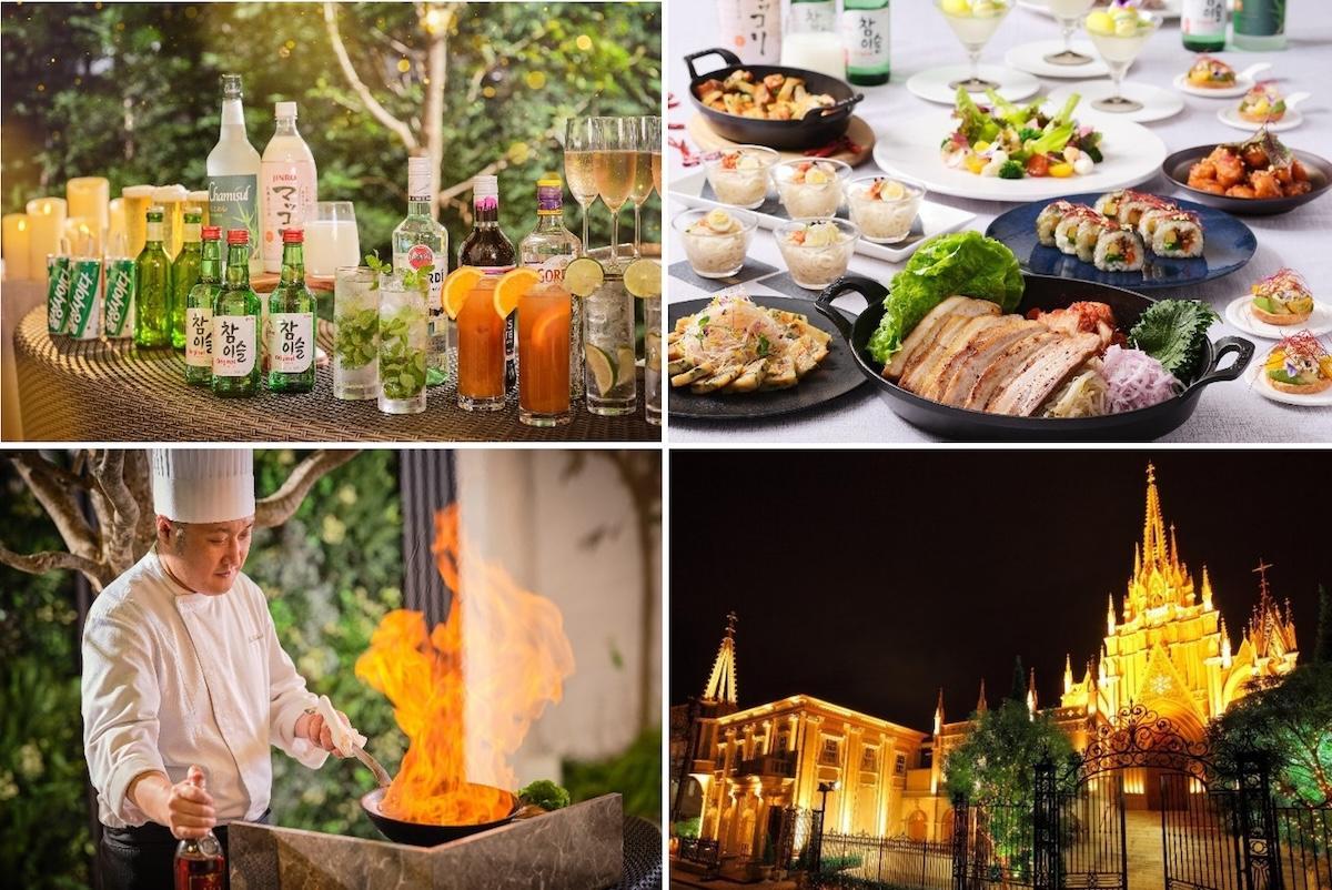韓国海苔をアクセントに添えた彩り鮮やかなサラダ、あつあつの鉄板で提供されるチーズタッカルビ、シェフが目の前でフランベして焼き上げる特製サムギョプサルなど、発酵食品や野菜をふんだんに使用したヘルシーな韓国料理を、青山セントグレース大聖堂の料理長が鮮やかなコースに仕上げた限定メニューを提供します。