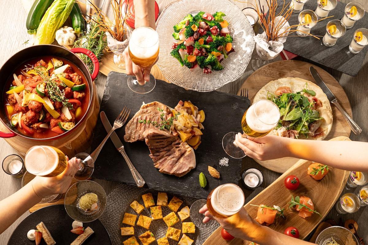 さらにスペシャルプランでは、上質な国産牛サーロインステーキなど3種の肉盛り合わせプレートが加わり、豊富なラインアップのドリンクも飲み放題になるぜいたくな内容です。そのほか、ちょい飲みにおすすめのワンプレートプランもおすすめ。