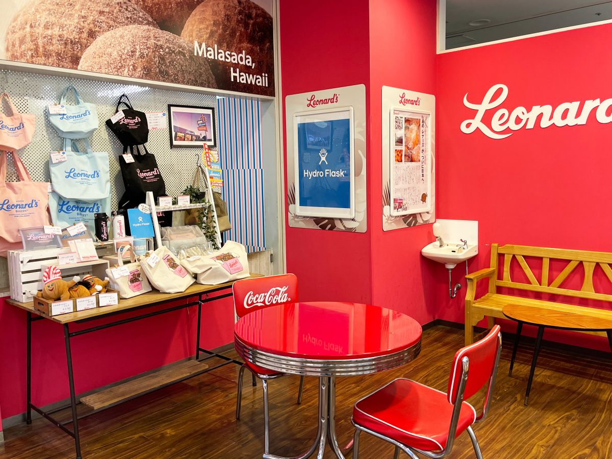 ショップのイートインスペースではオリジナルグッズも販売しています。「Leonard’s」のロゴがデザインされたバッグや、オリジナルキャラクターのマラサダベイビーのぬいぐるみなどが購入できます。