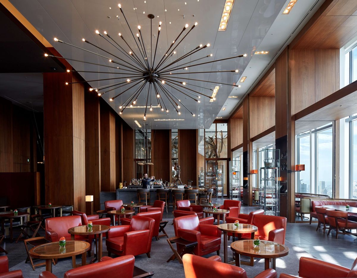 アフタヌーンティーは、51階にある「ザ タヴァン グリル&ラウンジ」で提供されます。天井が高く、各所から木の温もりを感じることのできる空間になっていて、窓は一面ガラス張り。高層階からの眺望を眺めながらアフタヌーンティーを楽しむことができます。