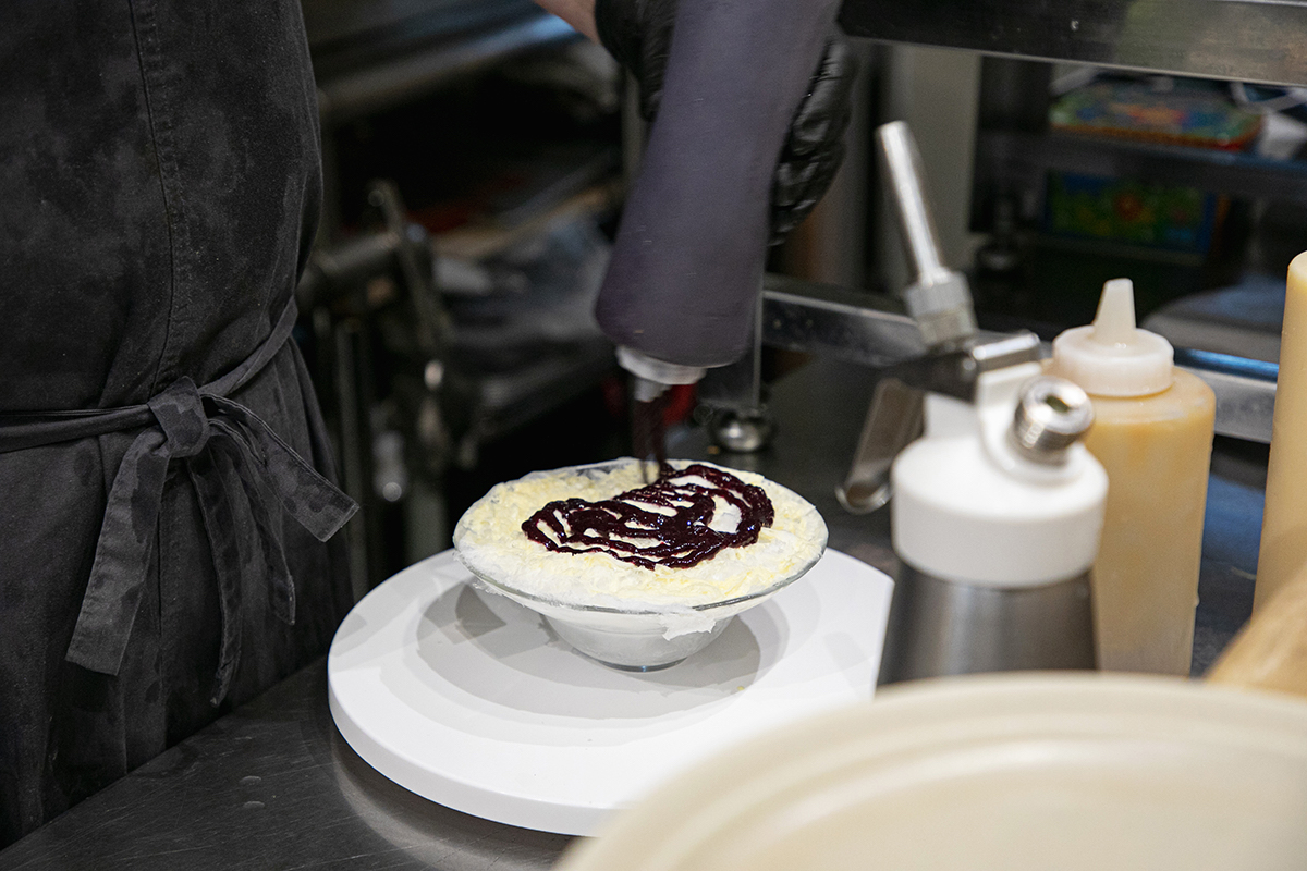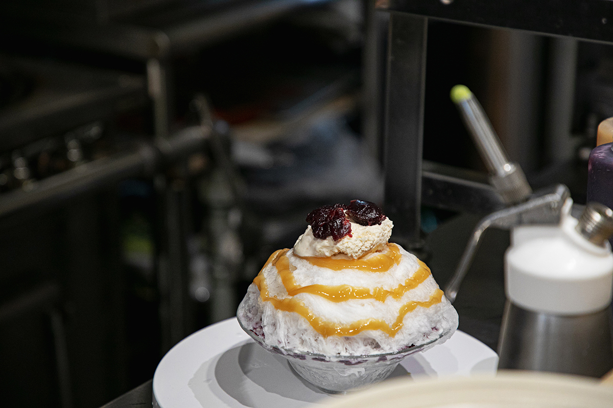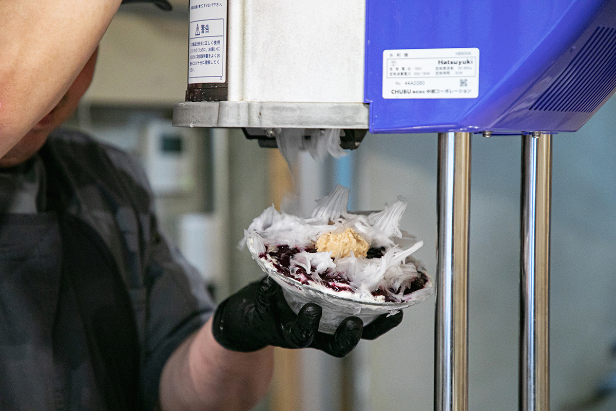 食材だけでなく、氷にもこだわりが。食べ進めていっても氷がすぐに溶けることなくフワフワな食感を楽しめるように、氷を冷蔵庫に入れて解凍するタイミングなどにも気を配っているとか。「氷削機は包丁と同じで刃が命なので、適度にメンテナンスを行いながら使っています」と竹中さんは言います。