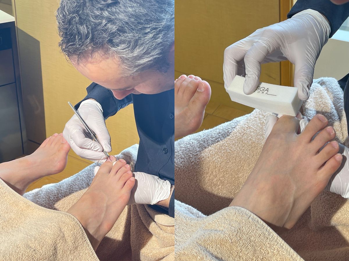 長さを整えていきますが、普段からネイルのサイド部分を切りすぎていたせいで、食い込み気味で巻き爪のリスクがあるそう。今後はストレートに切り揃えるようアドバイスを受けました。